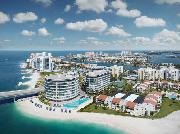 Plans have been filed for a 94-unit vacation rental resort development in Clearwater Beach. Forte Sands, which would be comprised of three buildings, would be built on one of the last remaining vacant parcels on Clearwater Beach. The resort would include a pool and amenity area along the seawall on Clearwater pass. The plans indicate three distinct and separate buildings with space effect along the between the buildings so there is no walling off effect along the beach.